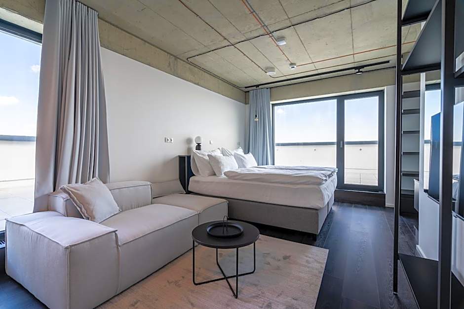 Five apartment styles line up for diverse stays, from the expansive Apartment Rooftop, Terrace at 1173 sqft to the cozy Studio Comfort at 301 sqft. All spaces are non-smoking and configured to host 2 adults and up to 1 child. Bed setups vary by choice: Rooftop Terrace and Superior Apartments feature a Queen bed; Deluxe Apartment comes with a King bed; Deluxe Apartment, Terrace (Suite) and Studio Comfort have a Queen bed.